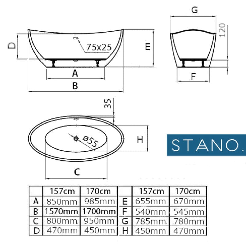 Die freistehende Badewanne BRIGHTON der Marke STANO. ist aus hochwertigem und robustem Resicryl®. Dies ist ein Verbundmaterial bestehend aus zwei Schichten hochwertigen Acryls (a 4 mm) und verstärkt mit einer sehr widerstandsfähigen Glasfaser. Badewanne aus einem Stück mit doppelter Rückenlehne.