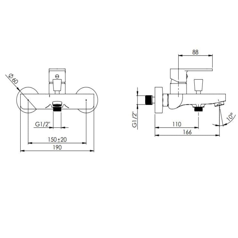 - Achsmaß: 150 mm