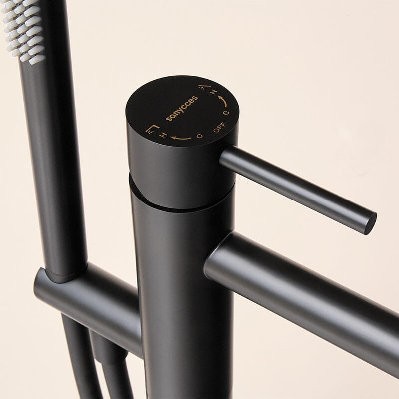 Einhebelmischer auf Fuß LOOP für Badewanne, erhältlich in 6 Farben. Modernes und elegantes Design aus massivem Messing, mit Cold Open-System für höhere Energieeffizienz und PVD-Oberfläche, die fingerabdruckbeständig ist.