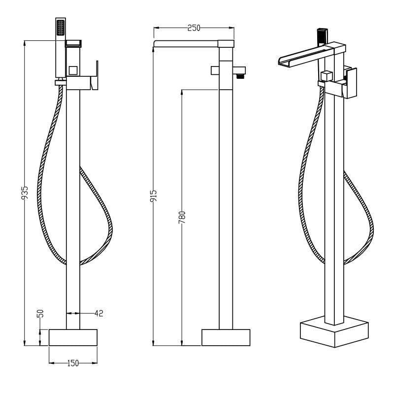 Freistehende Wannenarmatur, Wasserfall, Einhebelmischer, TANO, mit Duschkopf