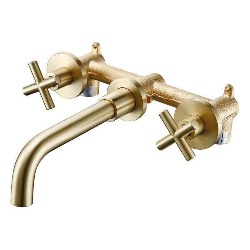 Die Unterputz-Zweigriff-Waschtischarmatur CARBINI gold, ist ein pefekter komplimentär zu einem Freistehenden Waschbecken.