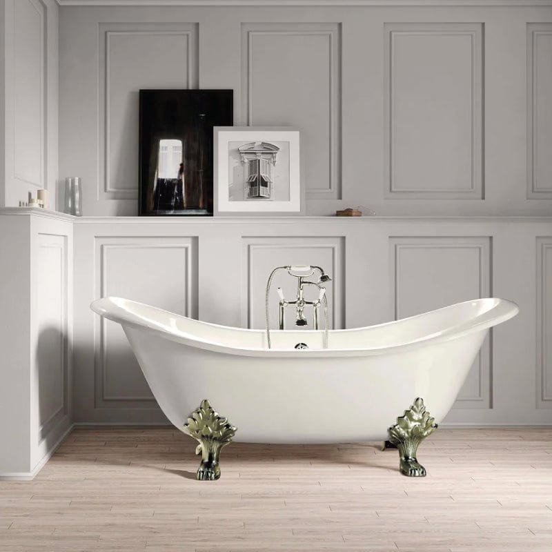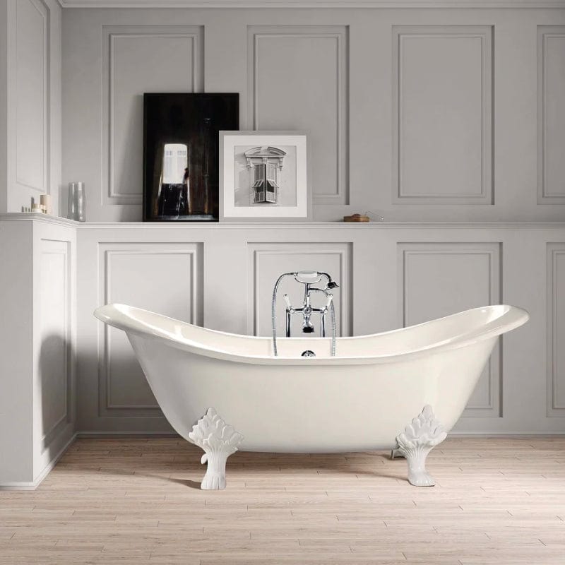 Gusseisen Badewanne KINGSTON weiß von Rogier&Mothes mit Füßen. Von innen emailliert und von außen handbemalt. Für einen optimalen Komfort, von zwei Personen bietet dieses Model eine doppelte Rückenlehne. Eine Badewanne, welche von vergangenen Zeiten inspiriert wurde.