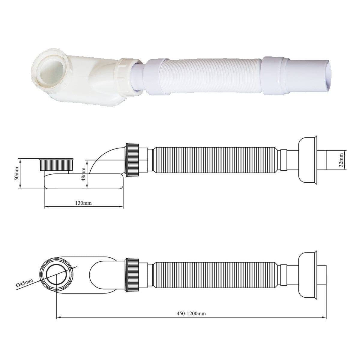 - Extra flacher und flexibler Siphon inklusive