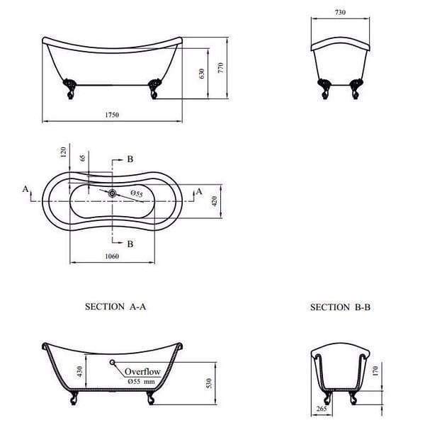 • Farboptionen der Klauenfüße: chrom, gold schwarz, weiß, altkupfer und altbronze