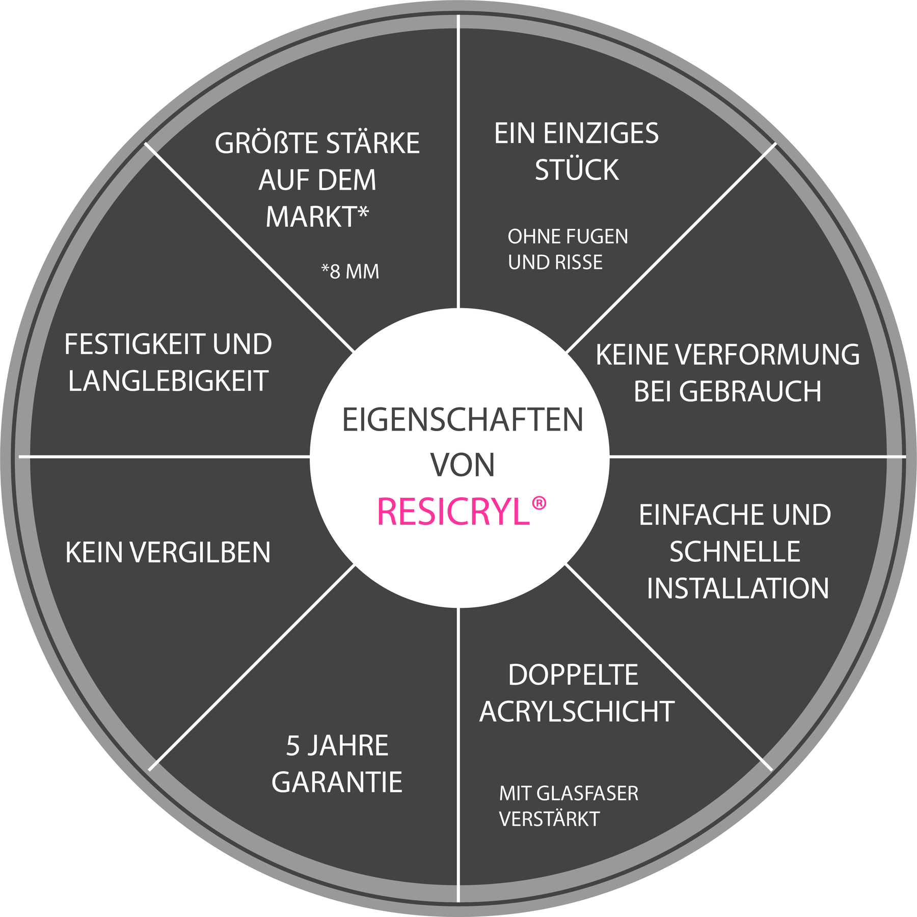 • Aus hochwertigem Résicryl® mit einer hochwiderstandsfähigen Glasfaserverstärkung versiegelt