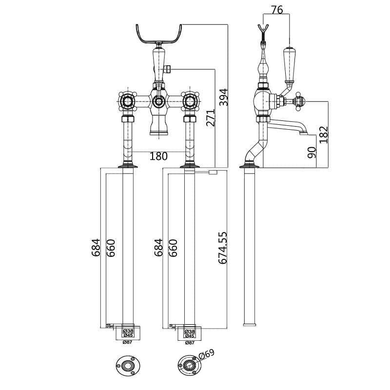 Freistehende-Retro-Armatur, CANTERBURY mit Halterung für Handbrause