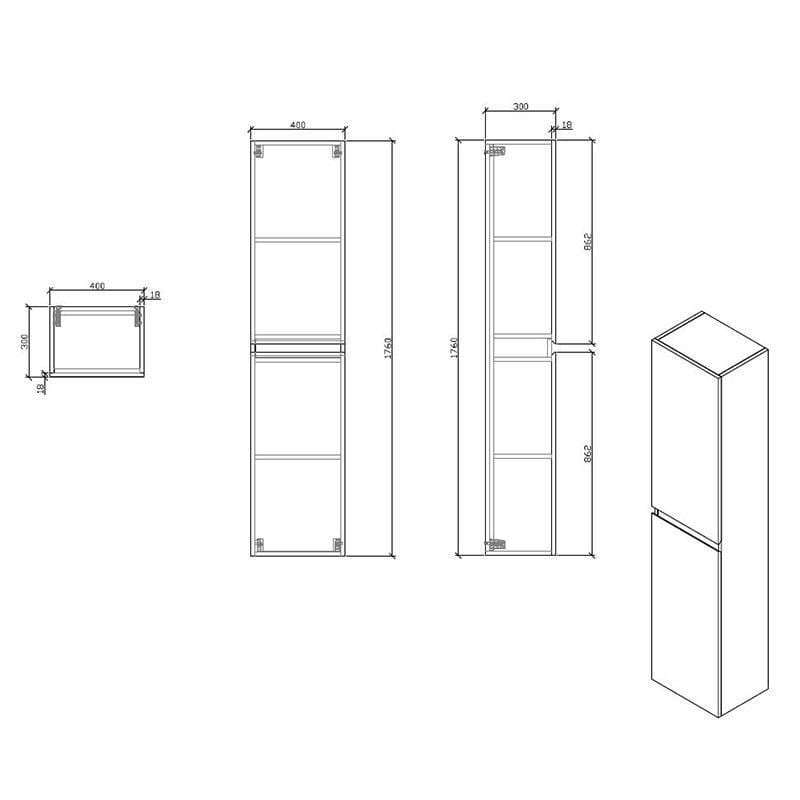 Maße: Höhe 1760 mm ( ohne Füße) x Länge 400 mm x Tiefe 300 mm