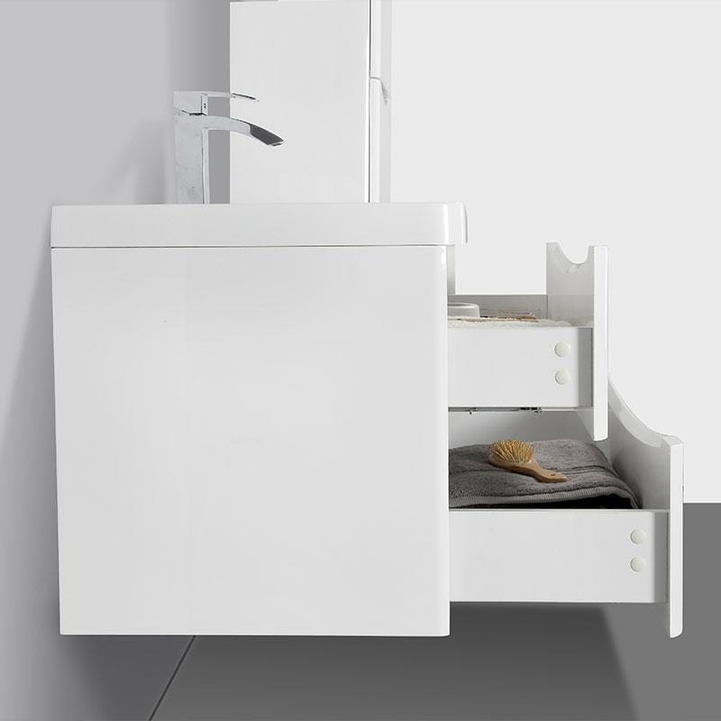 - Unterschrank, hängend, Spanplatte melaminbeschichtet, zwei Schubladen, weiß.