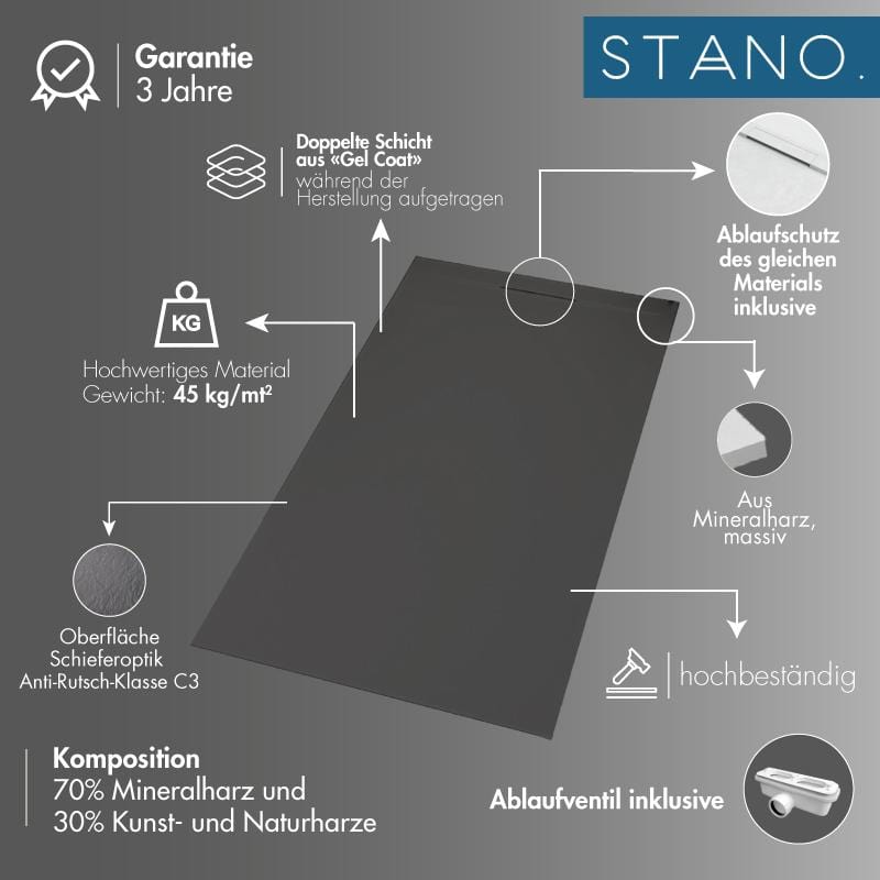 Mineralguss-Duschwanne extra flach QUORE, Schieferoptik, ANTHRAZIT