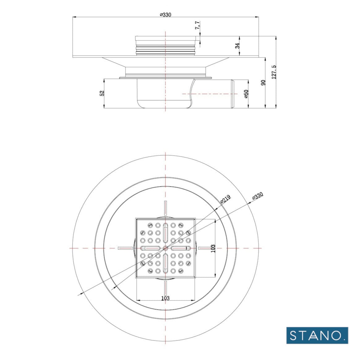 - Material des Ablaufgitters: Edelstahl