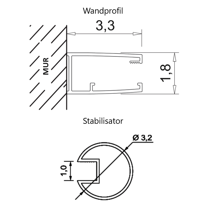 - Wandversatzprofil: 1 cm
