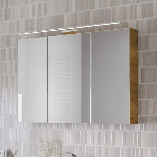 Steinkamp Living 2.0 Spiegelschrank 100 cm mit 3 Drehtüren, inkl. LED-Aufsatzleuchte