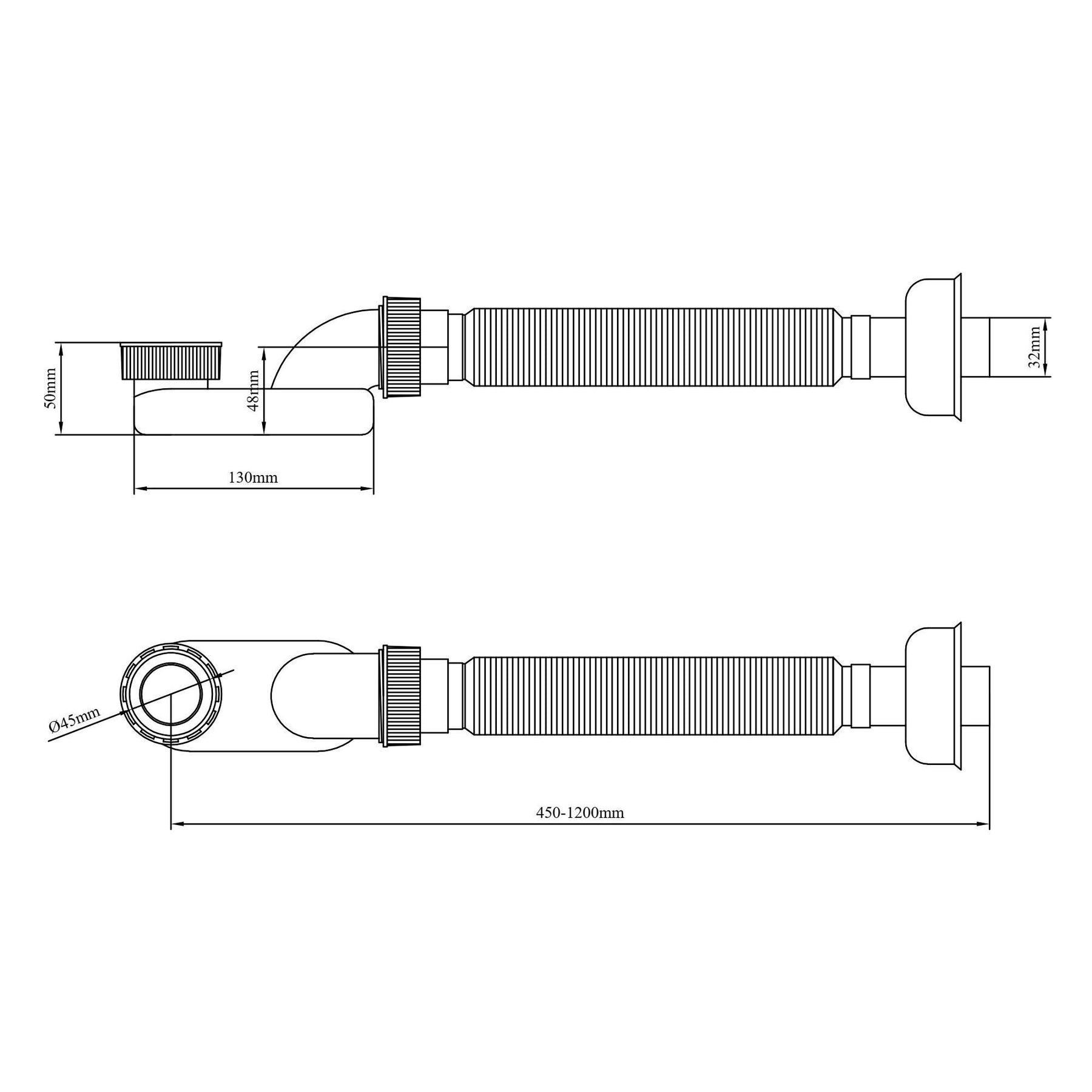• Der flexible Teil des Siphons lässt Ihnen nochmehr freiheit bei der Planung des Abflusses und der Positionierung der Badewanne.