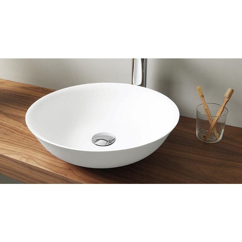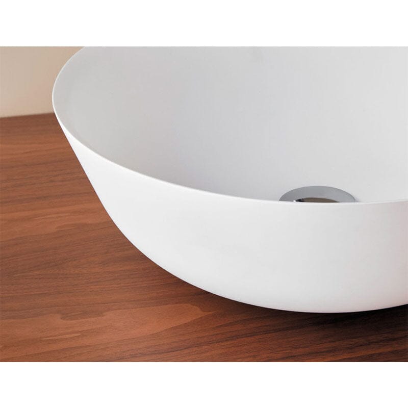 Das runde Aufsatzwaschbecken BOL aus Mineralwerkstoff vereint modernes Design mit zeitloser Eleganz. Das widerstandsfähige, pflegeleichte Material macht es zur idealen Wahl für ein stilvolles und funktionales Badezimmer.