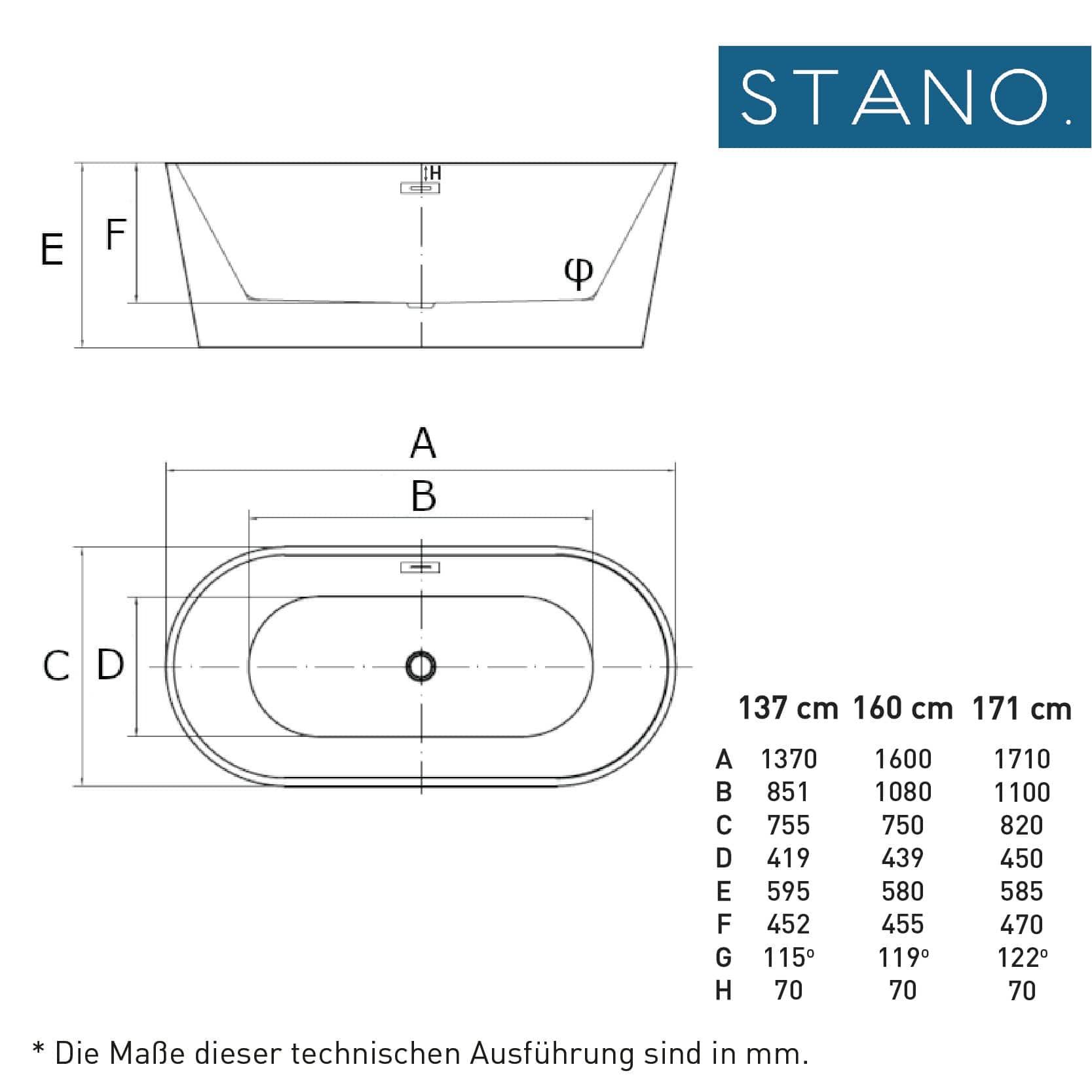 Freistehende Badewanne von STANO. aus hochwertigem Sanitäracryl Resicryl®. Diese badewannen sind besonders solide, langlebig und angenehm im Griff.