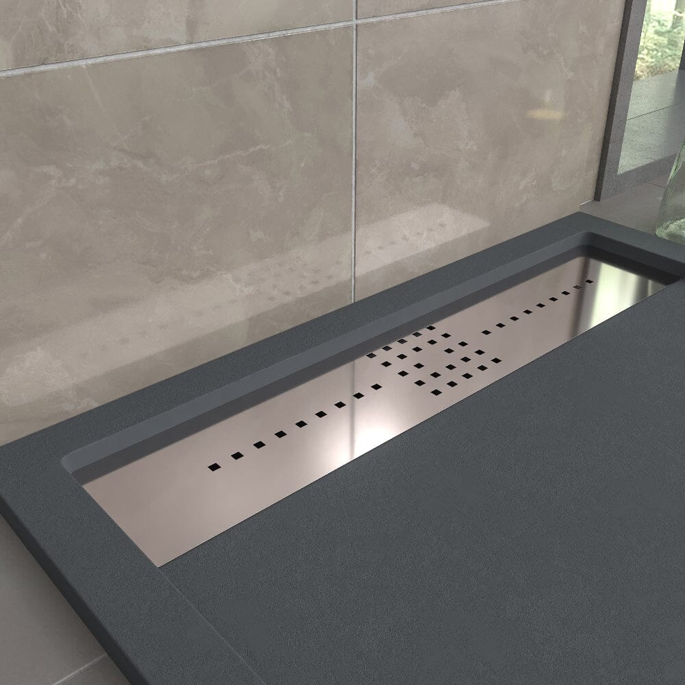 Extra flache Duschwanne ORION für eine ultramoderne italienische Dusche. Bei dieser Duschwanne ist der Wasserablauf von allen vier Seiten gesehen mittig platziert.