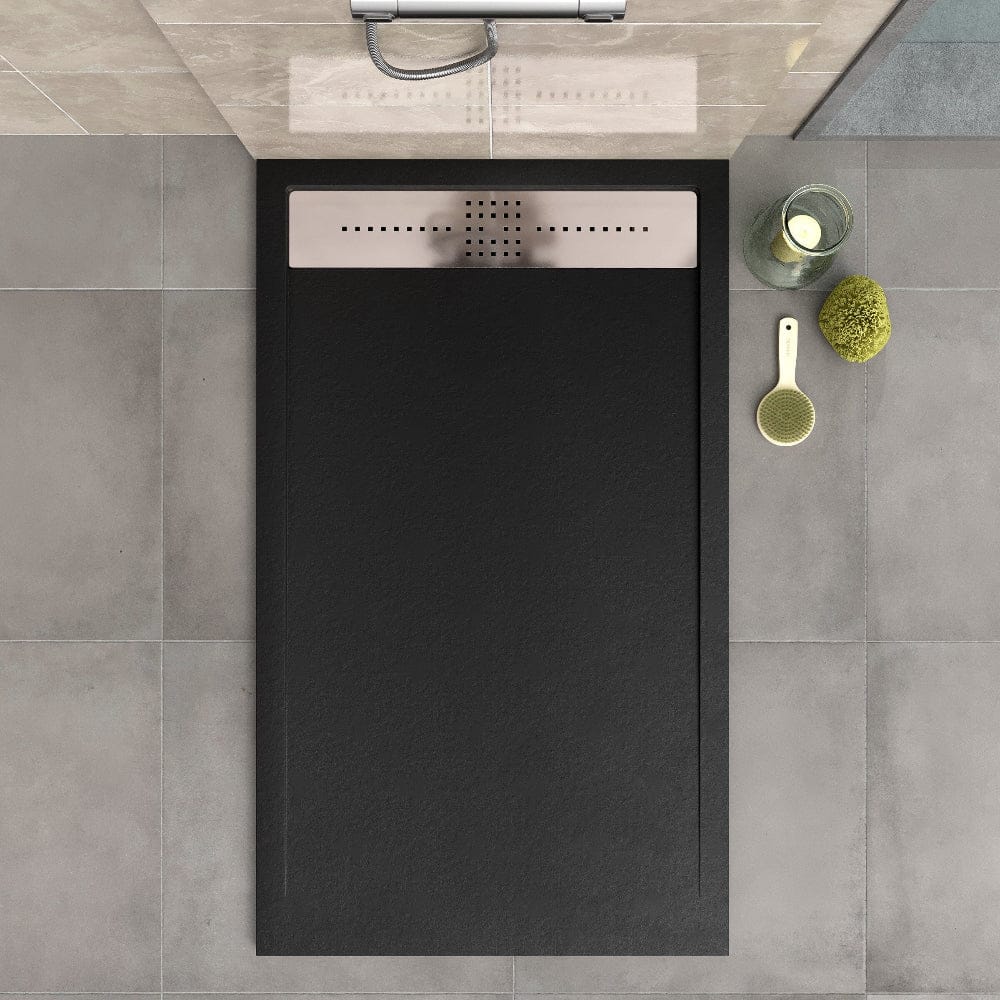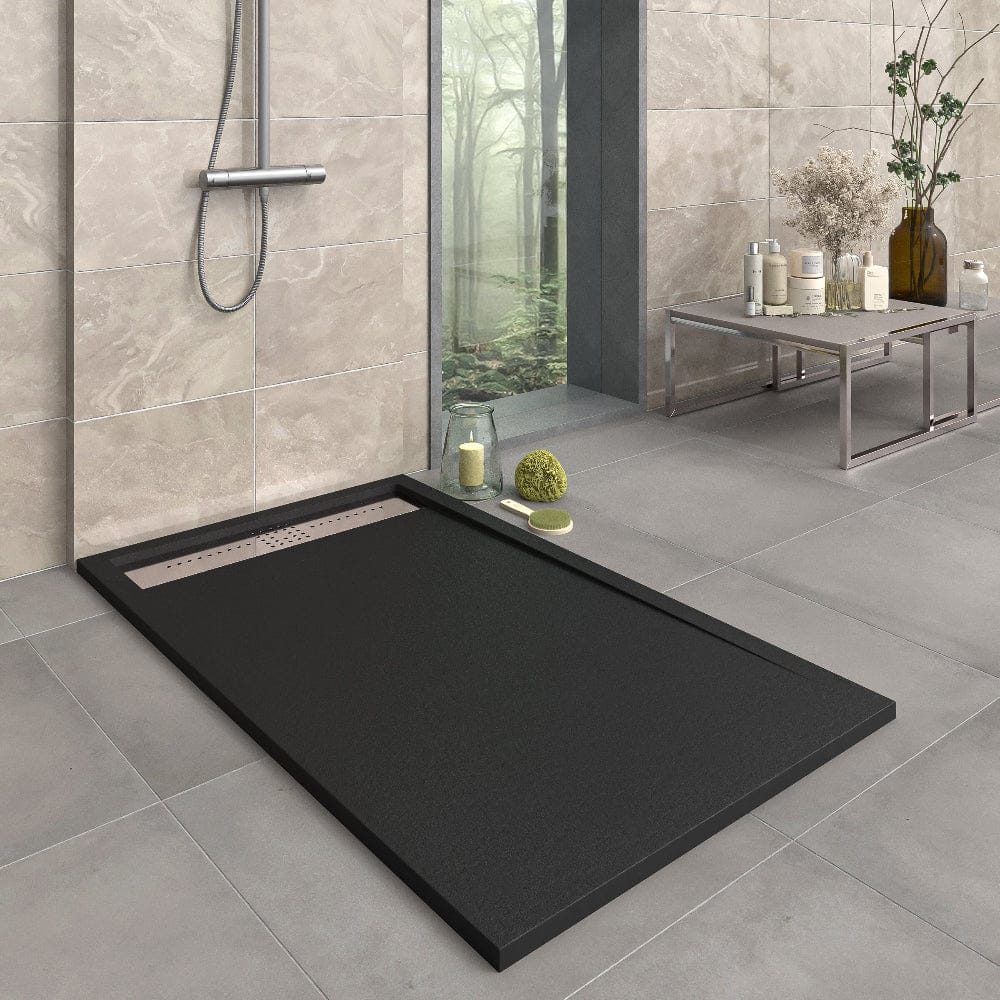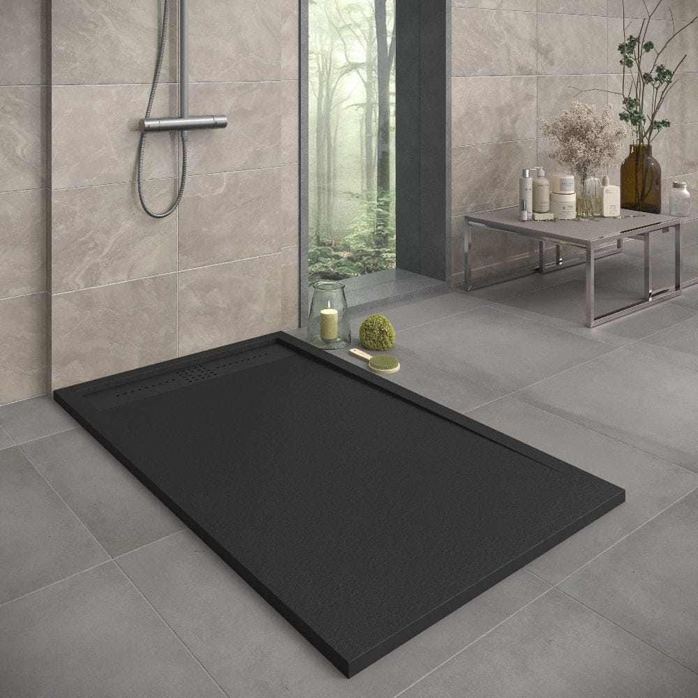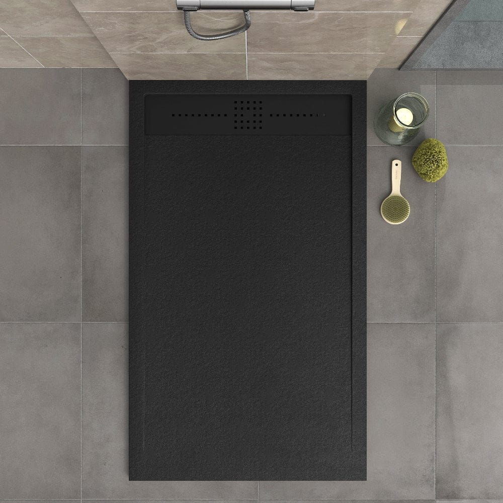Mineralguss-Duschwanne extra flach ORION, Schieferoptik, SCHWARZ